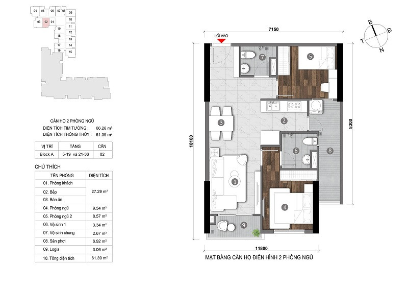 Layout căn hộ 2 phòng ngủ