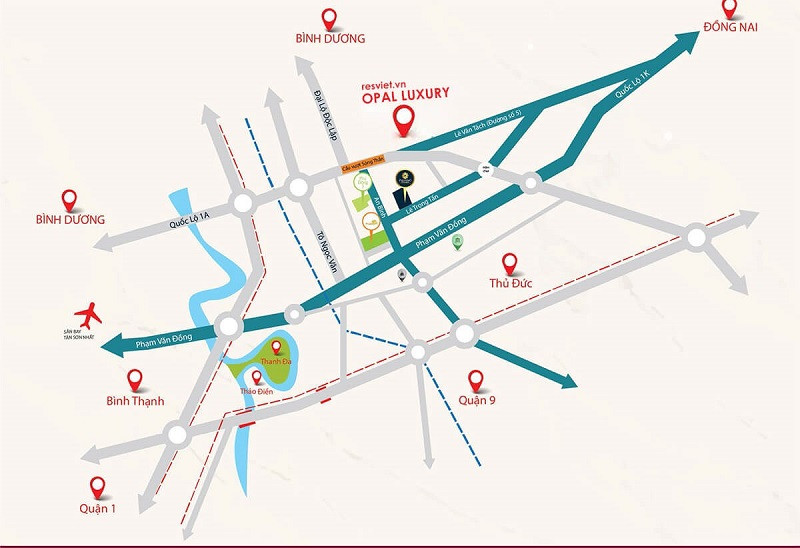 Opal Luxury tọa lạc trên mặt tiền Quốc Lộ 1A, gần KCN Sóng Thần và là điểm kết nối nhiều tuyến đường giao thông quan trọng. Với vị trí đắc địa, dự án không chỉ gần các tiện ích nội khu mà còn dễ dàng di chuyển đến các tỉnh thành lân cận.