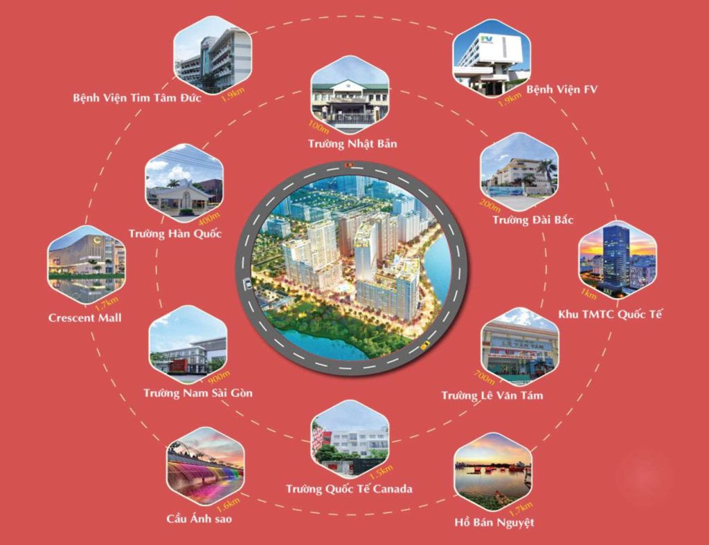 - Các trường học hàng đầu như Đinh Thiện Lý, trường quốc tế Canada.