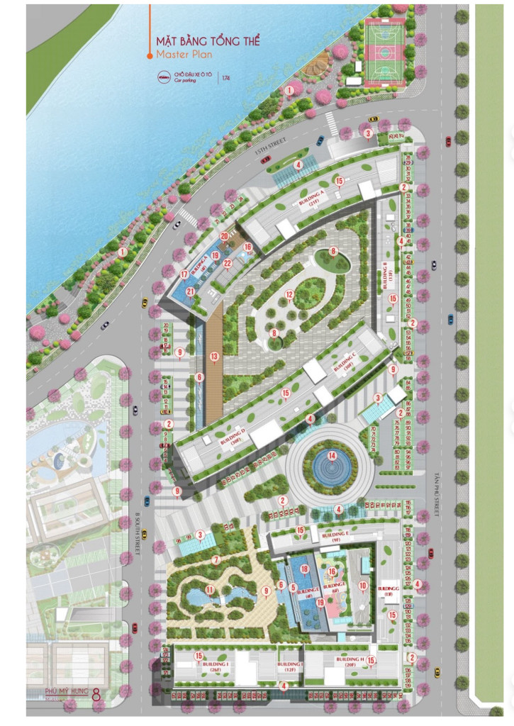 Tại vị trí trung tâm của khu Midtown, các tòa nhà như The Grande, The Symphony, và The Signature kết hợp với The Peak tạo nên bức tranh kiến trúc hoàn hảo, với SAKURA PARK – công viên hoa anh đào theo phong cách Việt Nam.