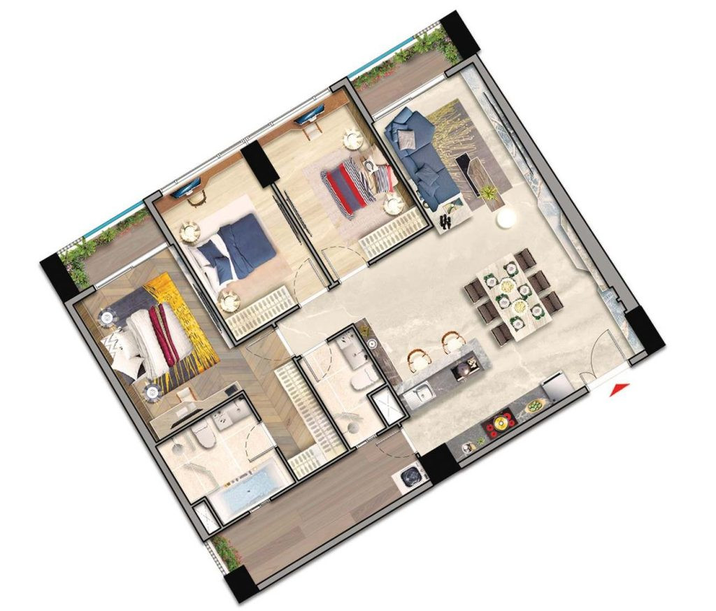 - Quy mô: 3 tòa nhà từ 13 đến 22 tầng, 268 căn hộ