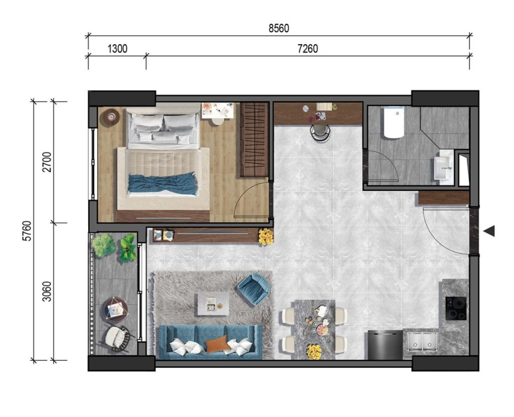 Layout Căn Hộ 1 Phòng Ngủ