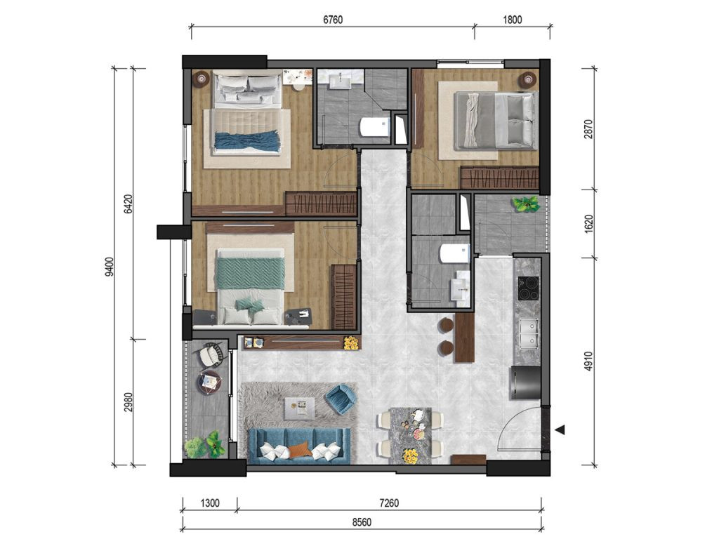 Layout căn hộ 3 phòng ngủ