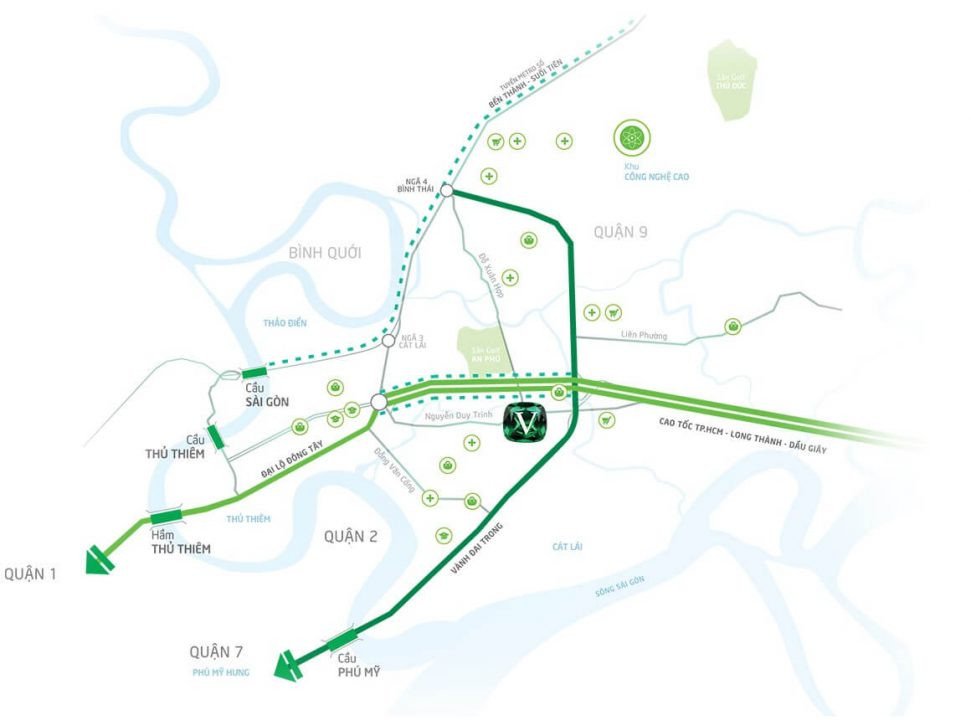 The Venica nằm ngay mặt tiền đường Đỗ Xuân Hợp, cách các trục giao thông chính như cao tốc TP.HCM – Long Thành – Dầu Giây chỉ vài phút di chuyển. Điều này giúp cư dân có thể dễ dàng kết nối với trung tâm thành phố và các tỉnh lân cận. Không chỉ vậy, vị trí này còn tạo ra không gian sống yên tĩnh, mang lại cảm giác trong lành.