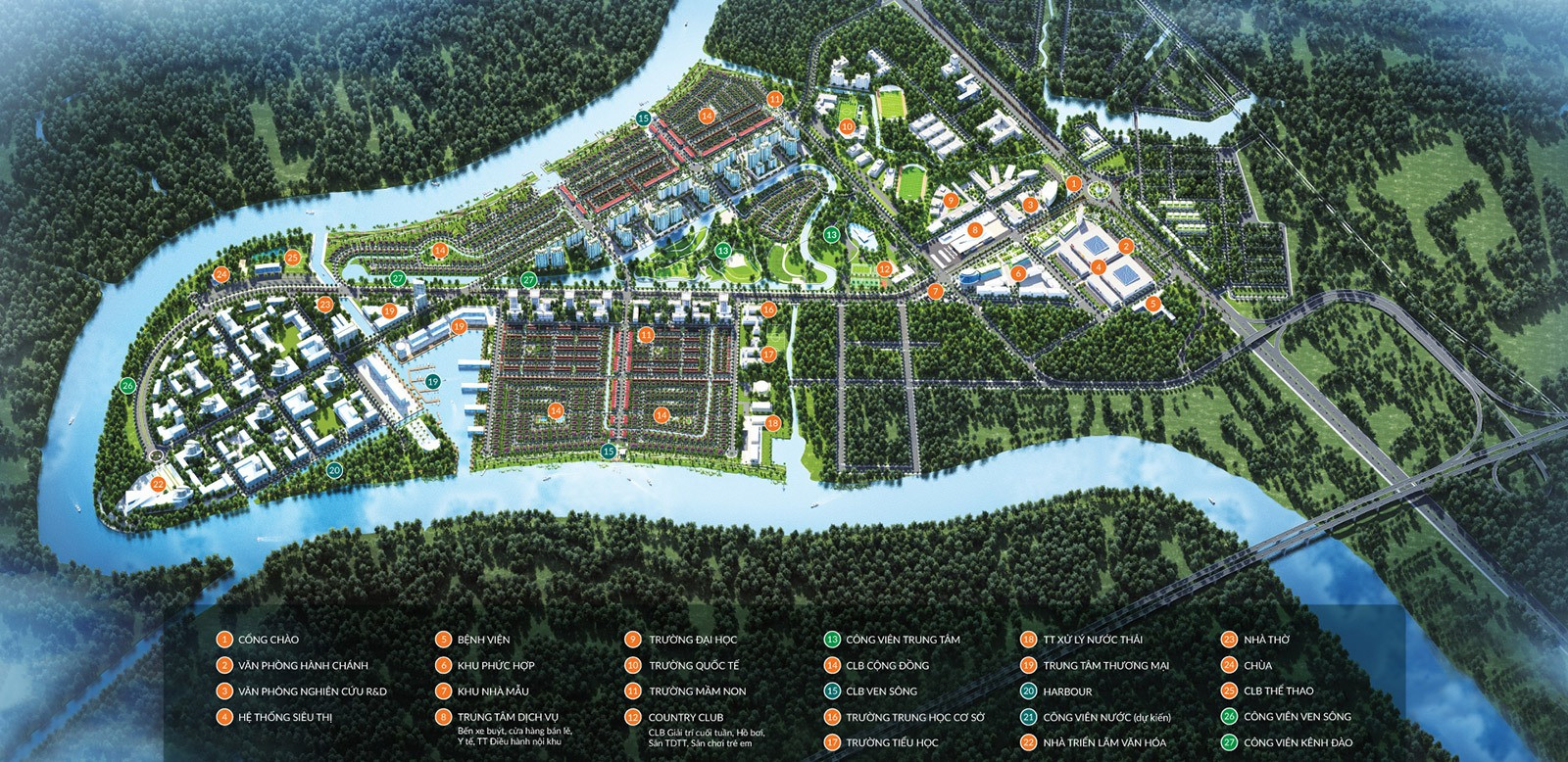 | Công viên và không gian xanh | Công viên sông nước rộng lớn, không gian xanh lý tưởng cho các hoạt động ngoài trời. |