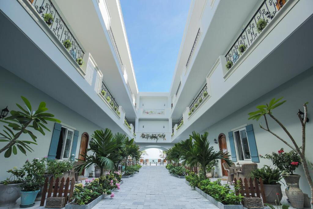 Khách sạn được thiết kế theo phong cách hiện đại với màu kem trung tính kết hợp hài hòa cùng sắc xanh dương, tạo nên bầu không khí nghỉ dưỡng nhẹ nhàng, thoải mái.