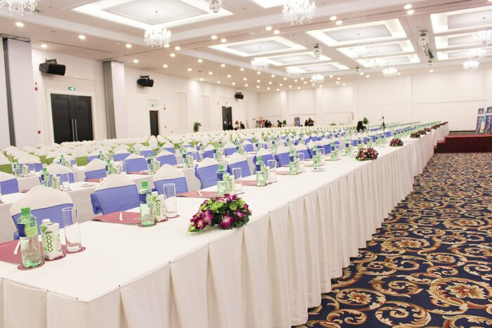 Trung tâm hội nghị tại khách sạn là địa điểm lý tưởng cho tiệc cưới và các sự kiện lớn, với nhiều phòng họp được trang bị hiện đại.