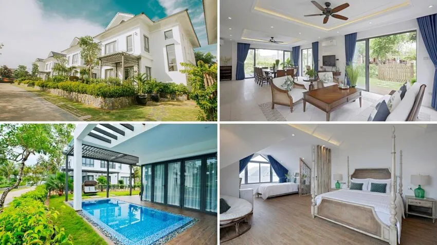 - 🏡 Không gian: Được thiết kế sang trọng với nội thất cao cấp cùng bể bơi ngoài trời và sân vườn riêng.